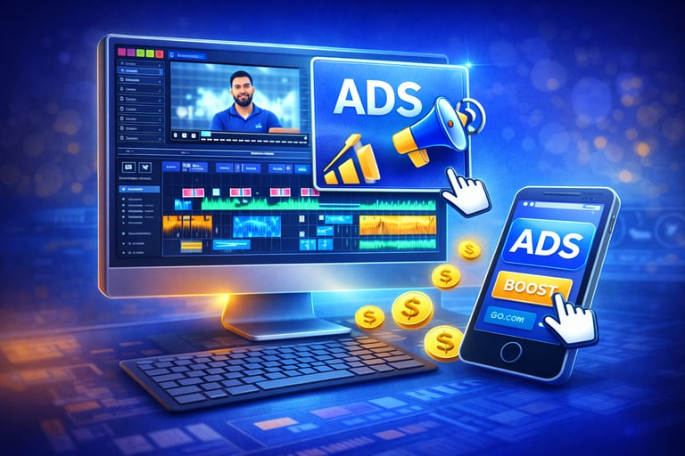 Trabalhamos também com edição de vídeo e criação de propagandas para Instagram, Facebook e outras redes. Também gerenciamos campanhas de anúncios (ADS) para alavancar sua presença online, atraindo o público certo e gerando resultados.